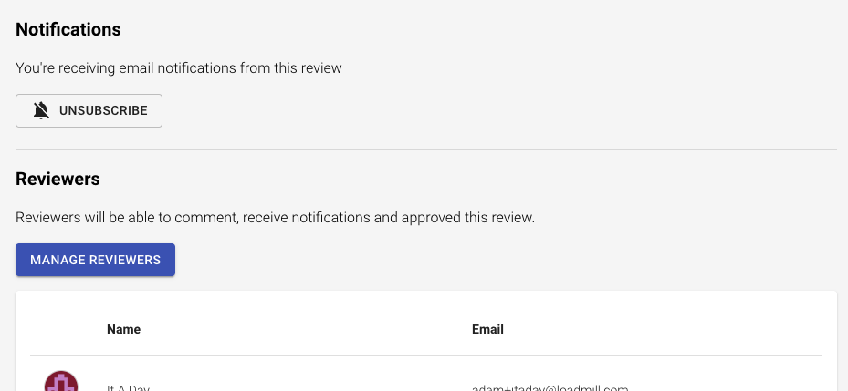 Once a review is created, the team members added as reviewers are notified and have access to comment on it.