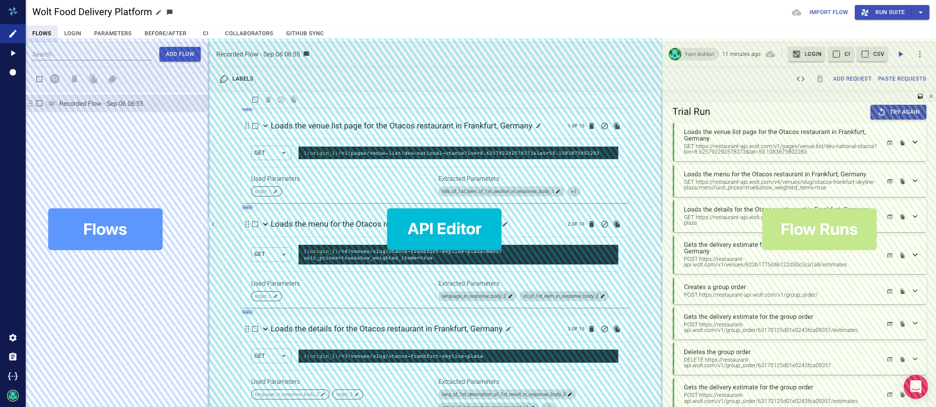 * On the Flow Runs (or Trial Runs) in the right column, you can see a single test run per flow that includes all its activity logs.