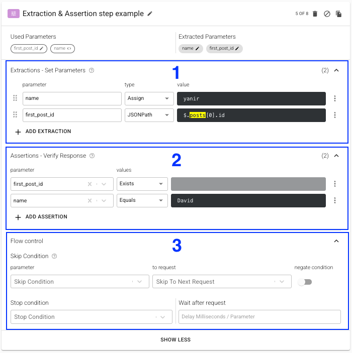 The extraction & assertion step allows extracting, assigning parameters and add validations without spinning an entire request. Among it's usages are assigning or allocating values at the beginning of a flow of after calling a generic shared flow and we need to extract/re-assign/validate additional flow specific data.